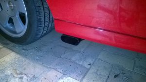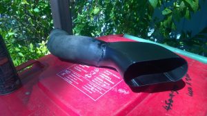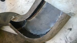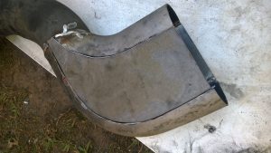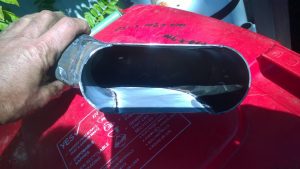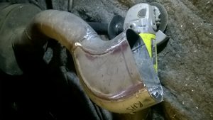The exhaust was kicking up dust at work sites. I fabricated a solution from some mandrel pipe bends and flat sheet.