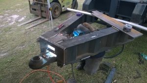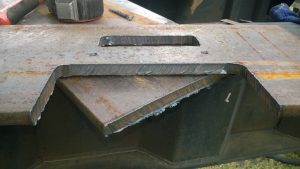 The overall length of this truck and trailer combination was too long, so I shortened the tow bar on the dog trailer. I have a plasma cutter able to cut 13mm thick steel.